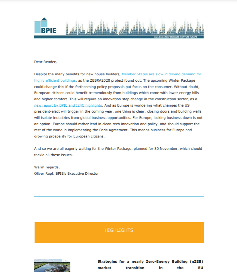 This concept and many other workable ideas presented in this newsletter could speed up the transformation of the building sector, so that it can achieve the goals enshrined in the Paris Agreement. Let’s get working!